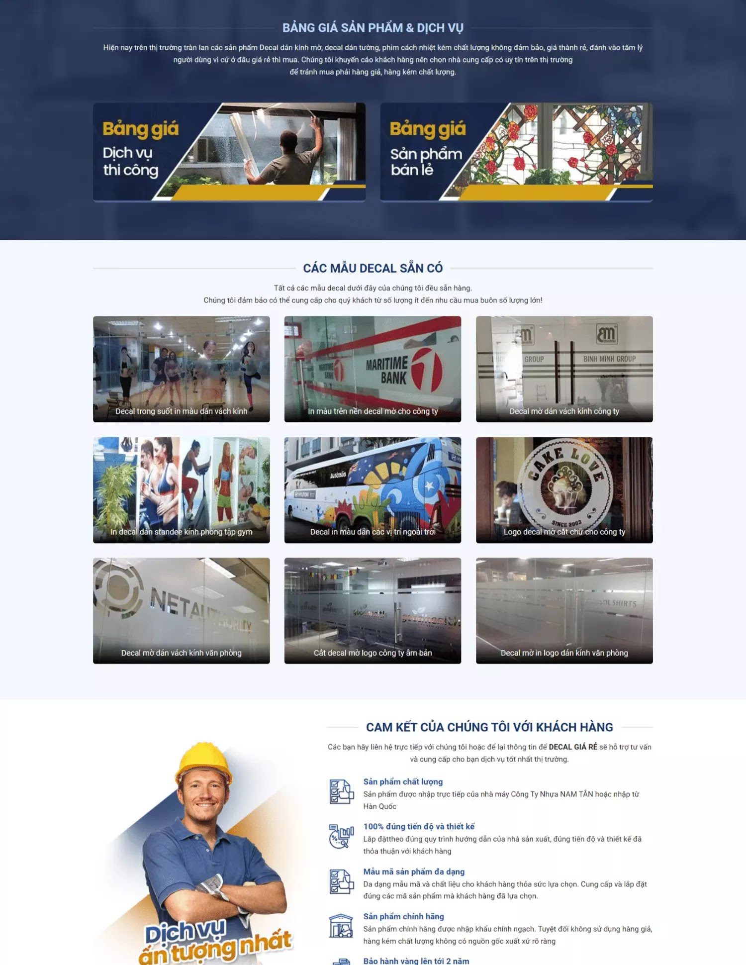 Giao diện website được thiết kế khoa học bởi bố cục hợp logic và đầy đủ thông tin. Những mục thông tin chủ chốt của website bao gồm: giới thiệu về doanh nghiệp, báo giá, các dự án đã thực hiện, mẫu decal đẹp, kiến thức – tin tức lĩnh vực kinh doanh, tổng hợp thông tin liên hệ.