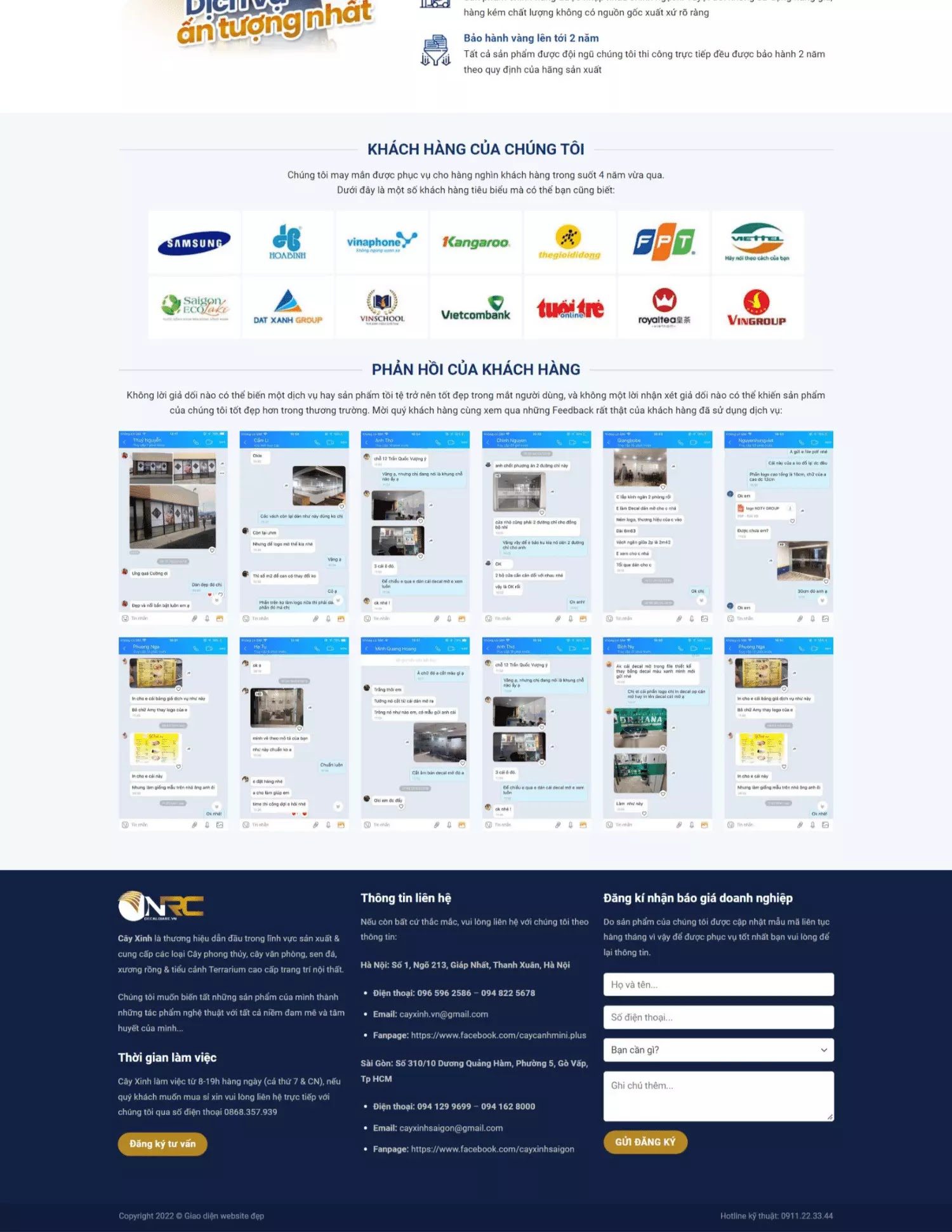 Các thông tin liên hệ như hotline, email, chat facebook, chat zalo được sắp xếp ngay từ giao diện chính, khách hàng có thể liên hệ tư vấn một cách nhanh nhất.